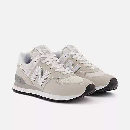 The 574 was designed to be a reliable shoe that could do many different things successfully. The 574's unique yet wearable set of qualities quickly made it a staple in wardrobes around the world. The 574+ is a contemporary and striking take on the classic 574 design. The addition of a two-piece stacked EVA midsole with a reduced ENCAP piece creates a sense of refined exaggeration. The midsole proportions are complemented by a wavy outsole, inspired by the original Trackster. Pigskin suede overlays and perforated and synthetic leather details offer a premium execution of the familiar 574 upper design.