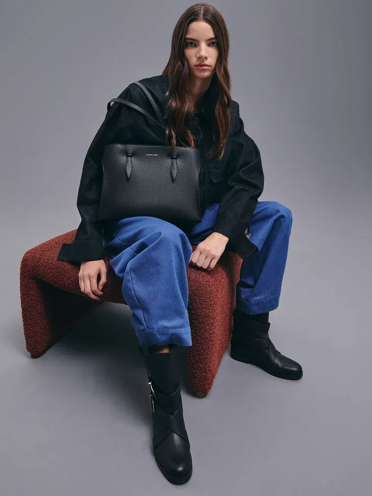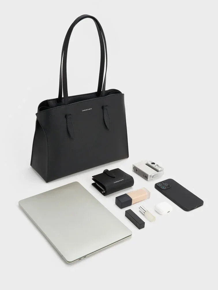 This Allyn tote bag in black features elongated handles, a clean-lined, minimalist design and a spacious interior. A modern classic, it is versatile, understated and polished -- carry it with tailored separates or structured dresses.