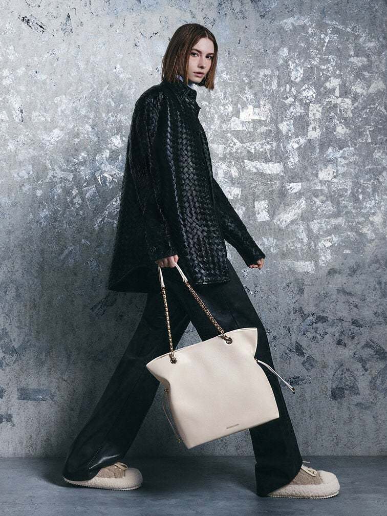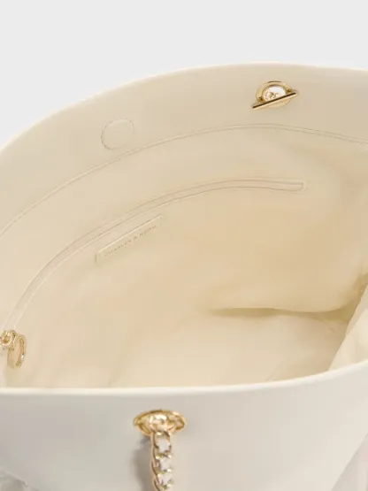 Arya Braided-Chain Tote Bag - cream