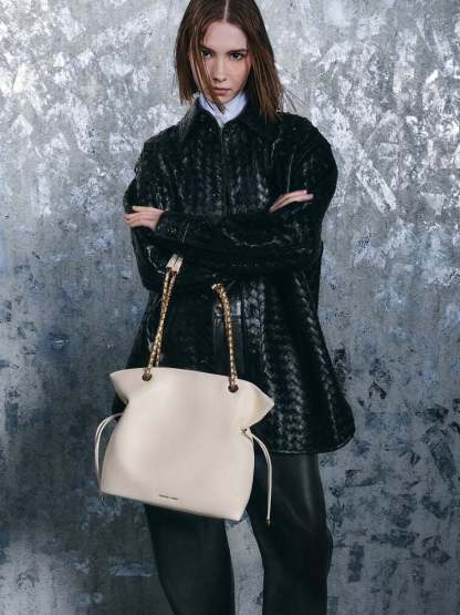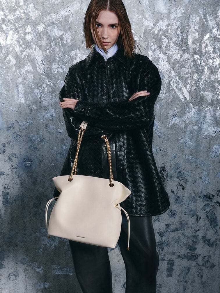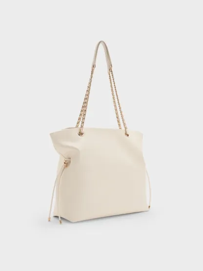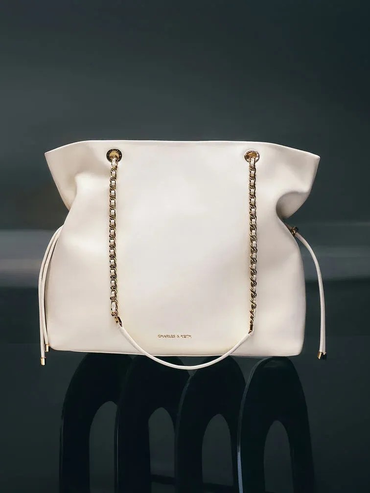 Looking elegant in cream, this subtly glamorous Arya tote bag features gold-tone braided-chain handles that will add a touch of shine to your everyday looks. Cinch the drawstring details at its sides to create a distinctive shape or let them out if you need more storage space.