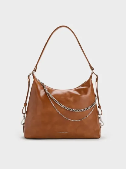 Atwood Chain Convertible Hobo Bag - distressed tan