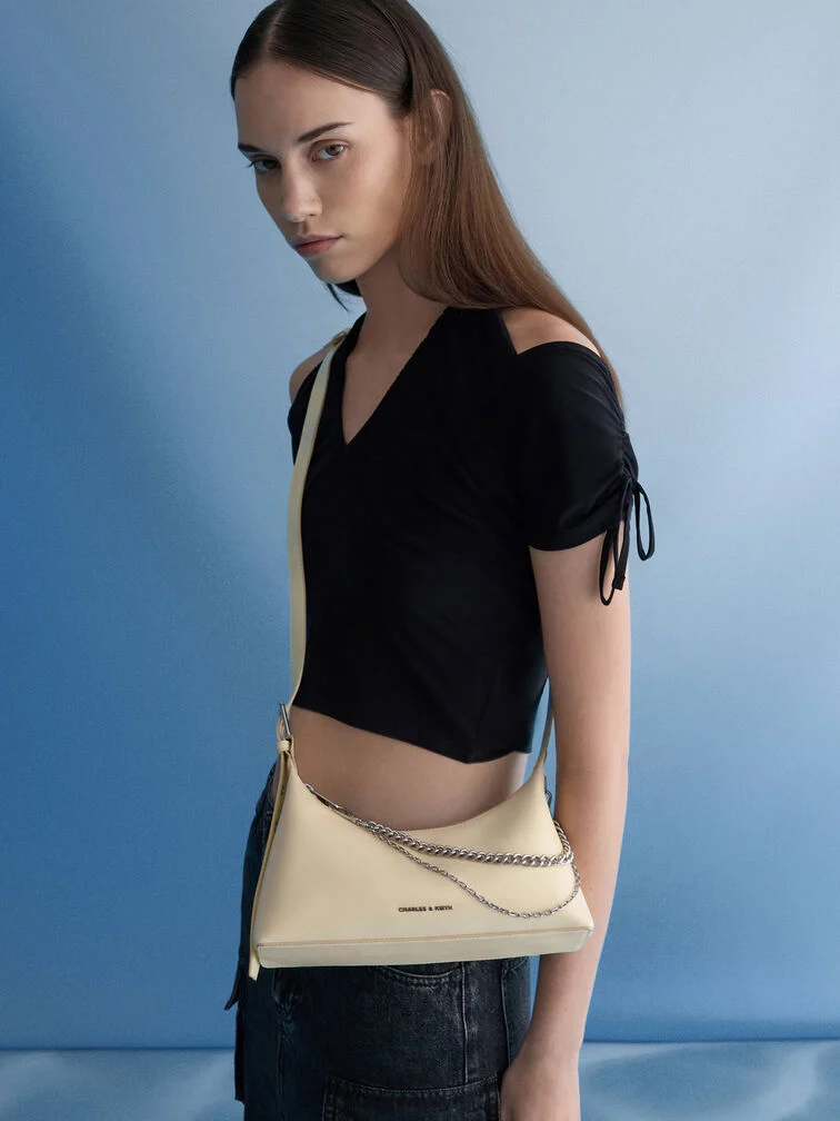 Let the Atwood be your pop of yellow this season. Featuring a sleek silhouette with a distinctive chain detail, the design is feminine in a modern sense. Depending on the occasion you are dressing for, you can carry this butter yellow piece as a shoulder or crossbody bag.