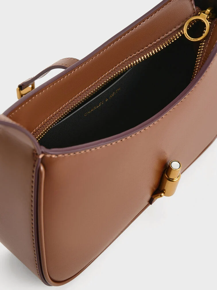 Cesia Metallic-Accent Shoulder Bag - chocolate
