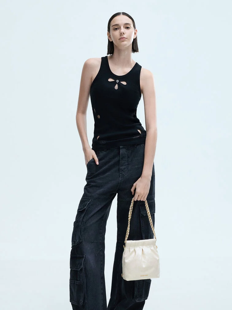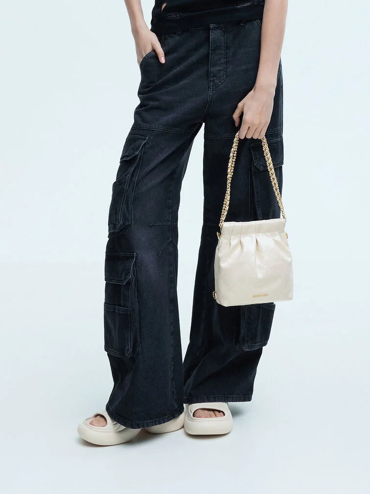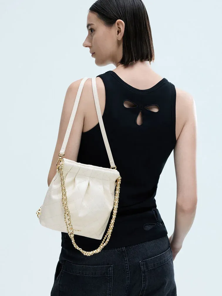 Duo Chain-Handle Two-Way Backpack - cream