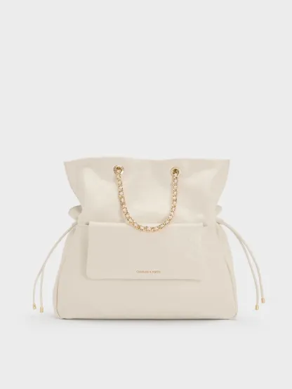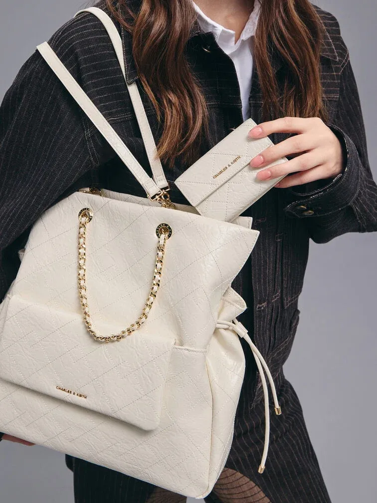 Duo Quilted Drawstring Two-Way Backpack - cream