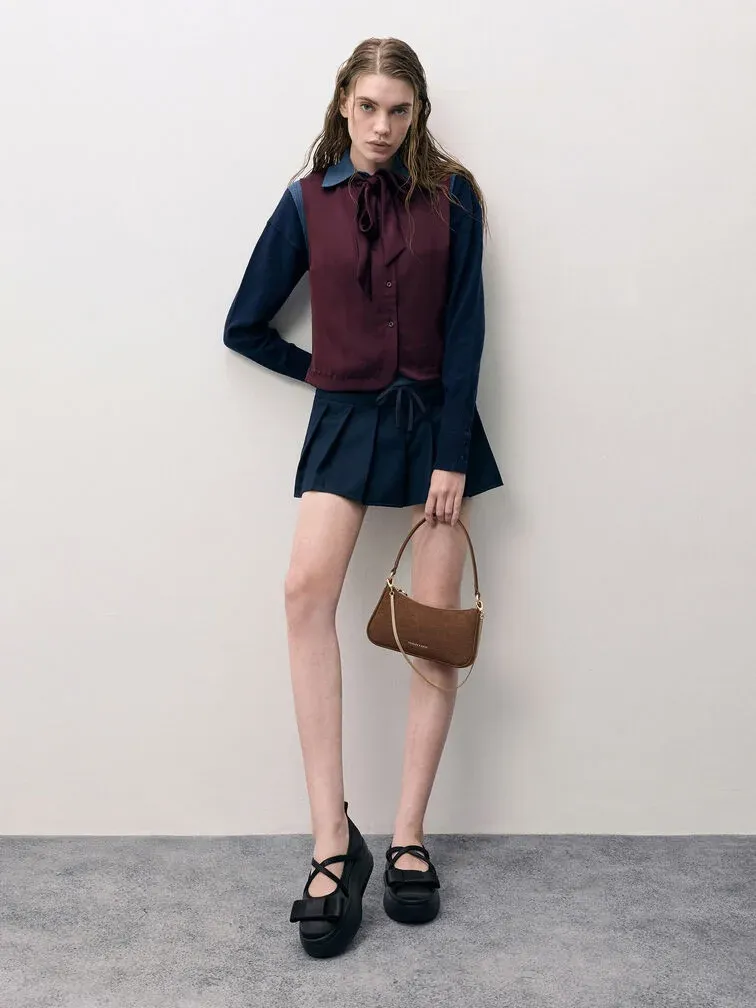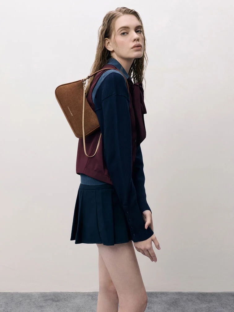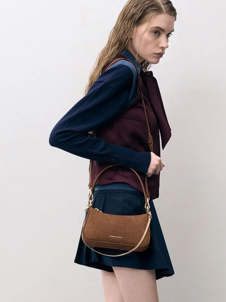 This Elspeth shoulder bag in chocolate features a chain strap, a top-zip closure, and a detachable handle. Use it to complete refined silhouettes for date nights or evening events.