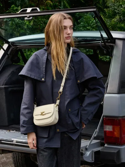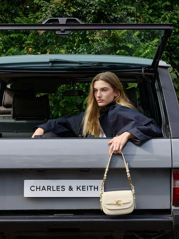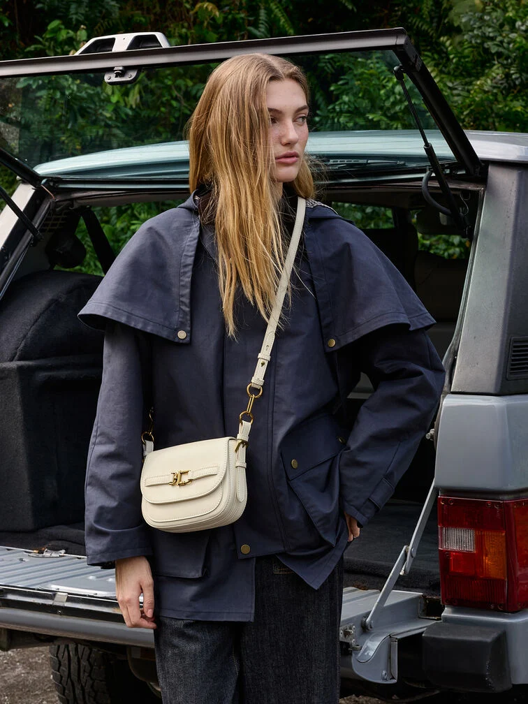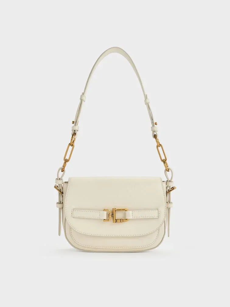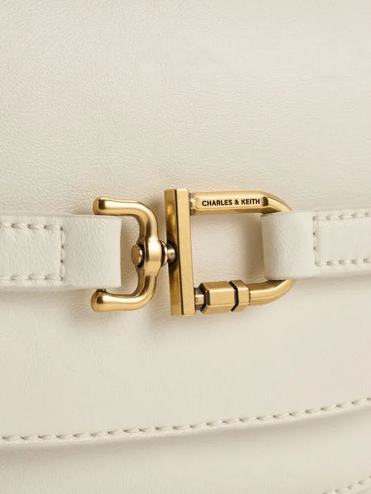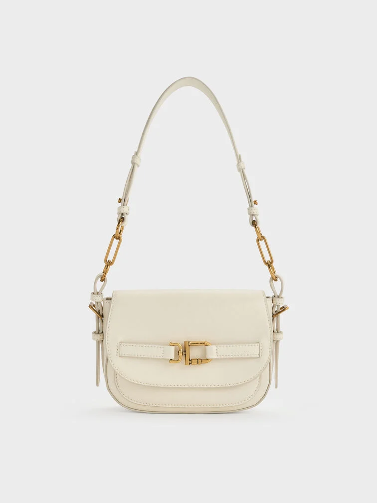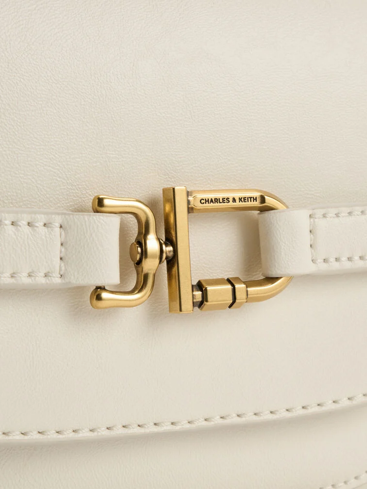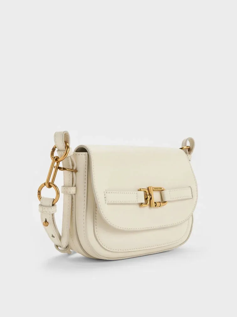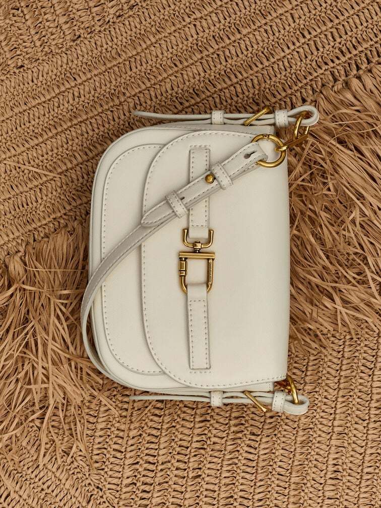 This Gwynne crossbody bag in cream features a saddle silhouette with softly rounded edges, a curved front flap with a belted detail, striking metallic accents and two detachable shoulder straps. Use it to bring quiet poise and polish to your everyday work looks.