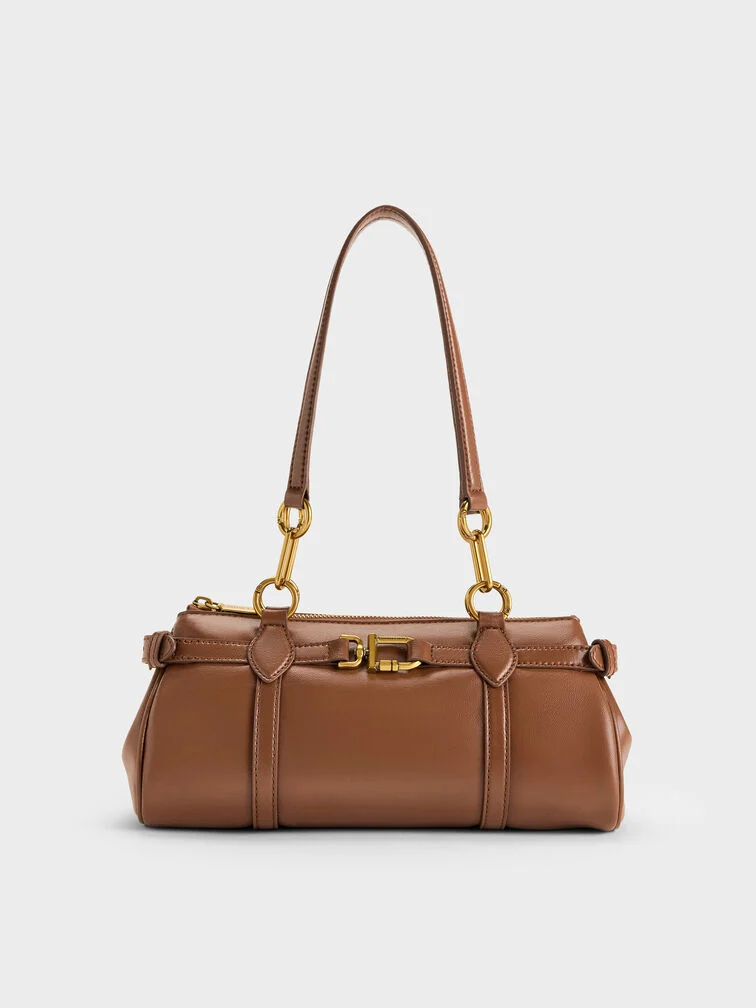 Gwynne Metallic-Accent Elongated Shoulder Bag - chocolate