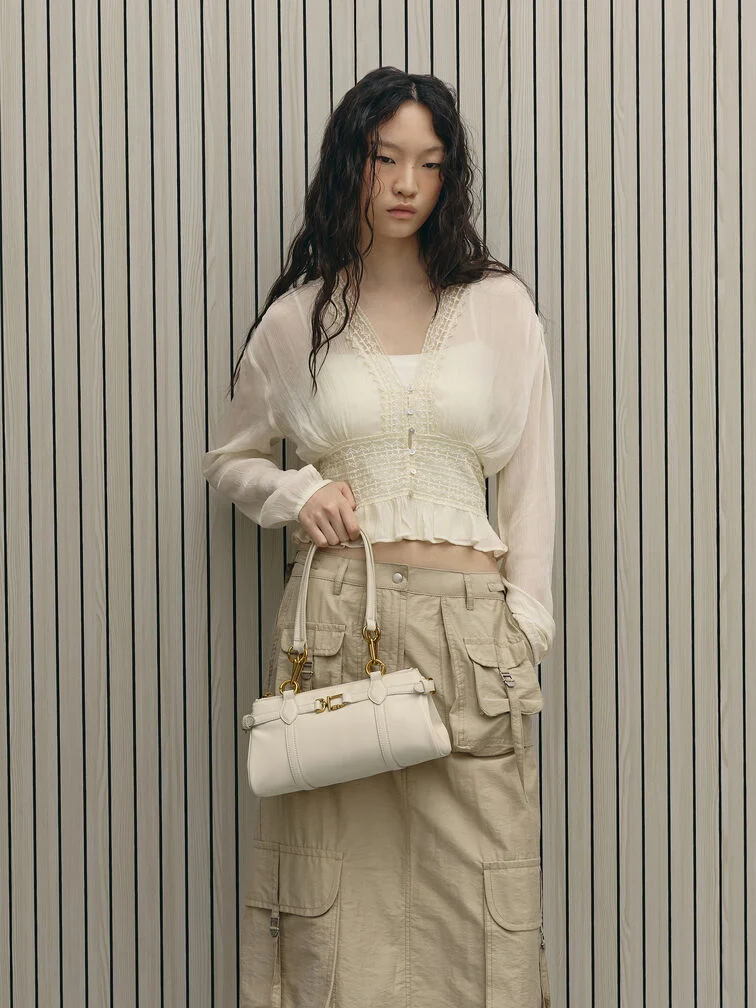 Gwynne Metallic-Accent Elongated Shoulder Bag - cream