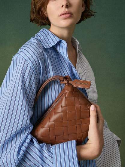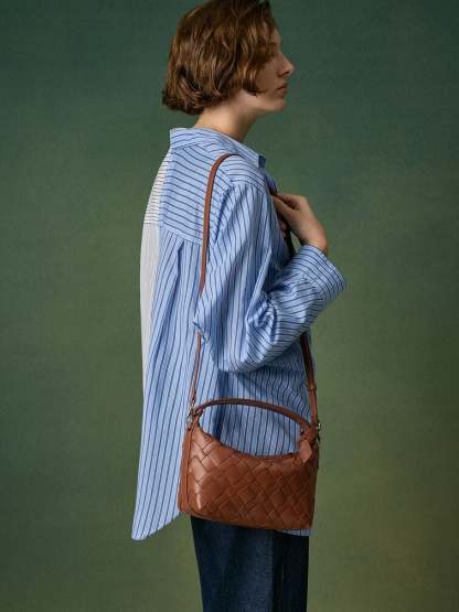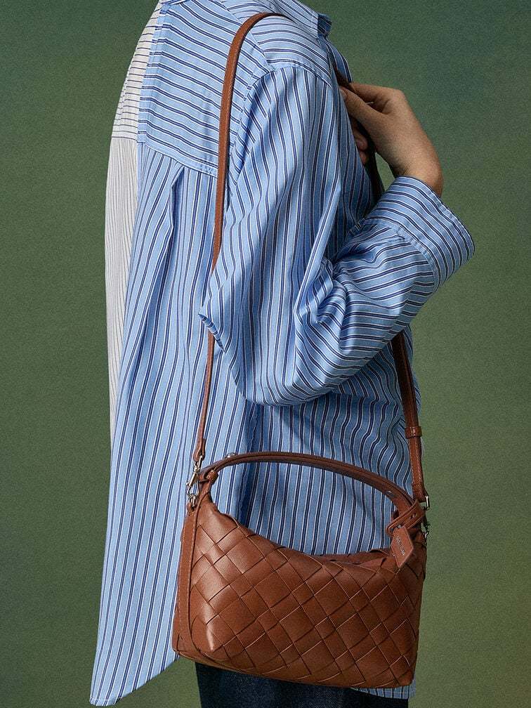 If you are getting just one new bag for the season, let it be this Ivette woven bag in rich chocolate-brown. It will add depth and contrast to any look, whether it is bright or neutral-toned. The softly structured construction and woven texture of this chic carrier make it a subtle statement piece.