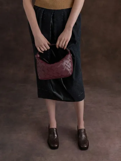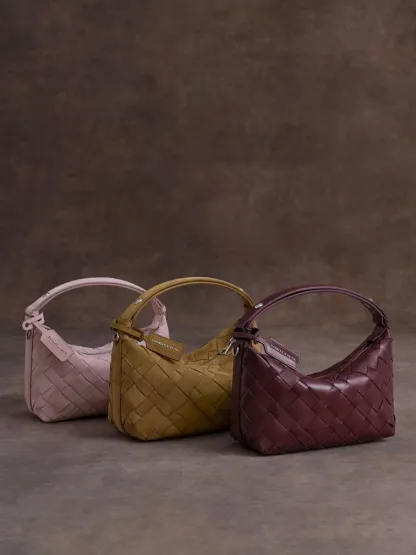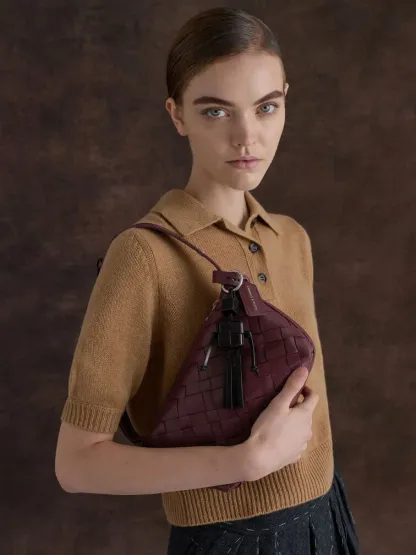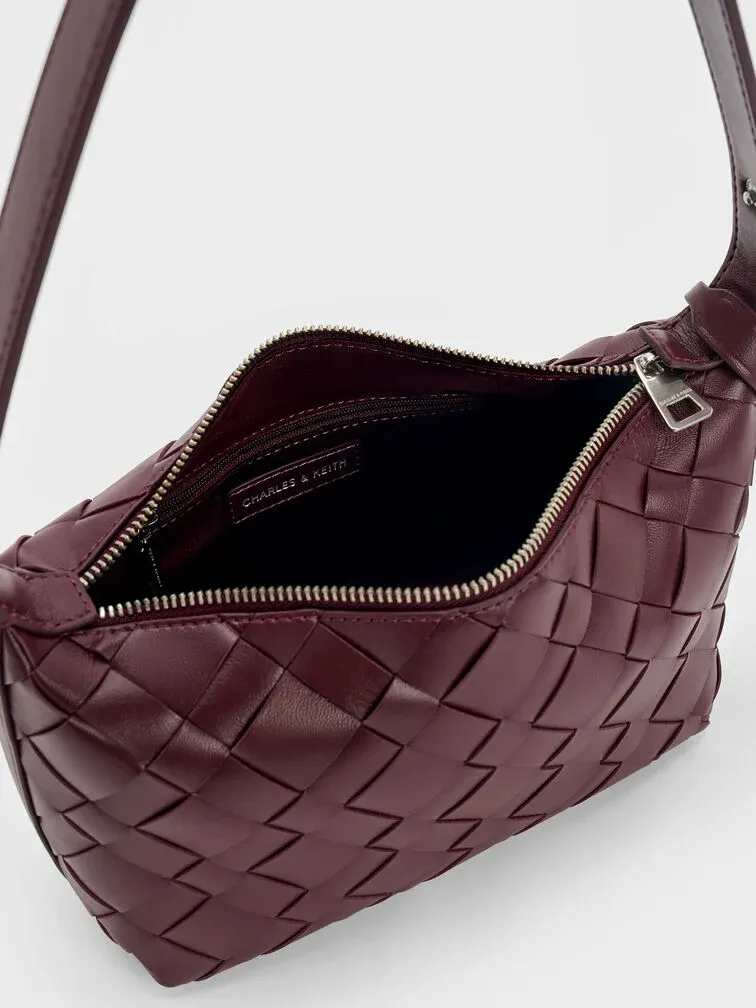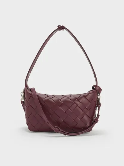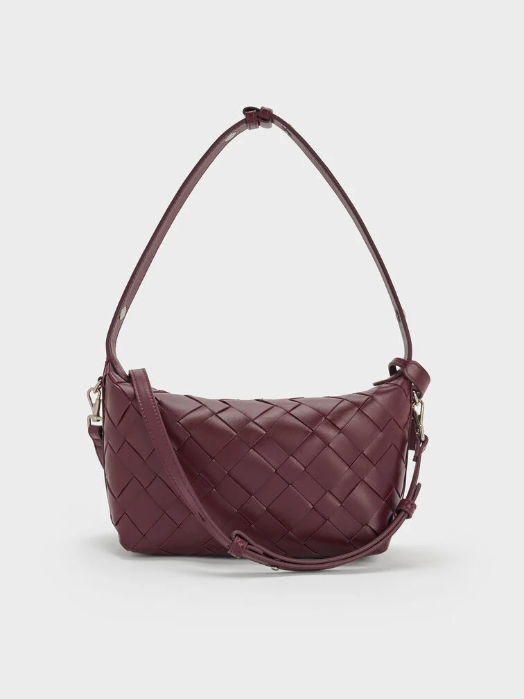This Ivette shoulder bag in wineberry red features a woven finish, a clean-lined silhouette and a single handle. Carry it to add colour and texture to both workplace and off-duty ensembles with flair and ease.