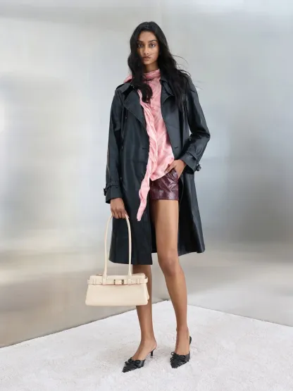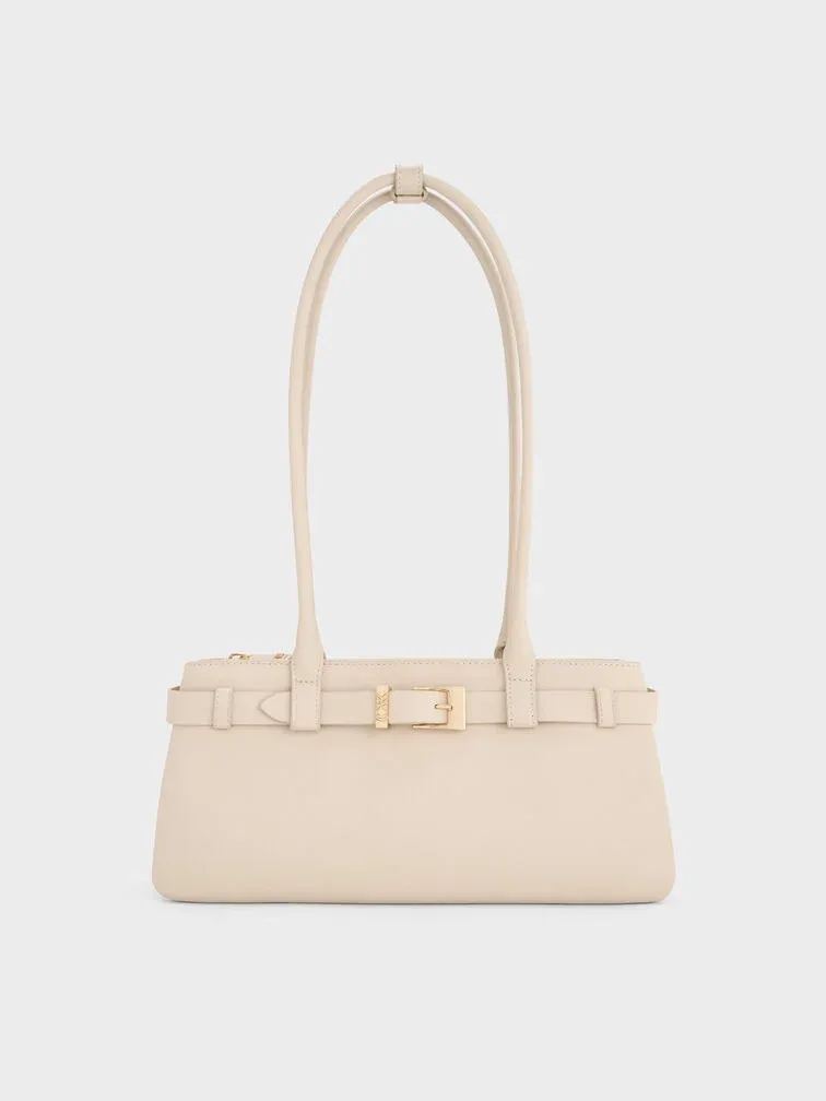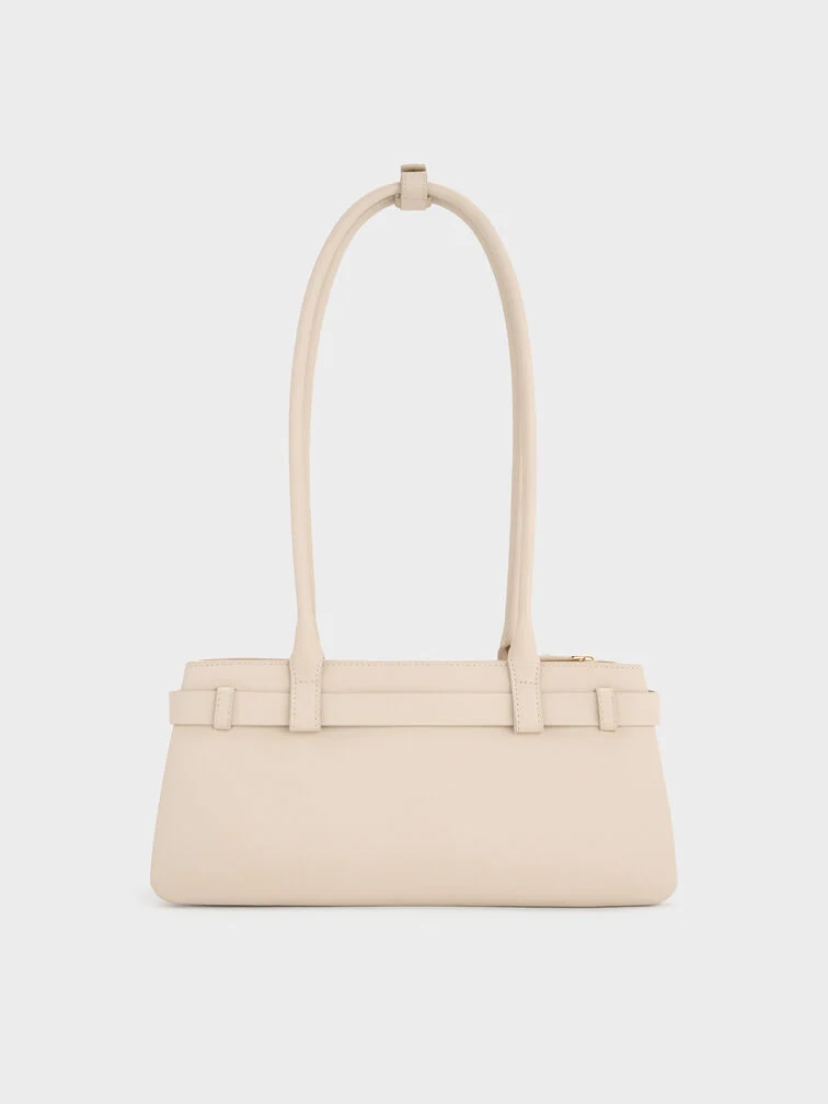 This Jody shoulder bag in chalk is made with genuine leather and features a belted detail, an elongated trapeze silhouette and double handles. Carry it with neutral-toned separates to create timeless, effortlessly stylish looks.