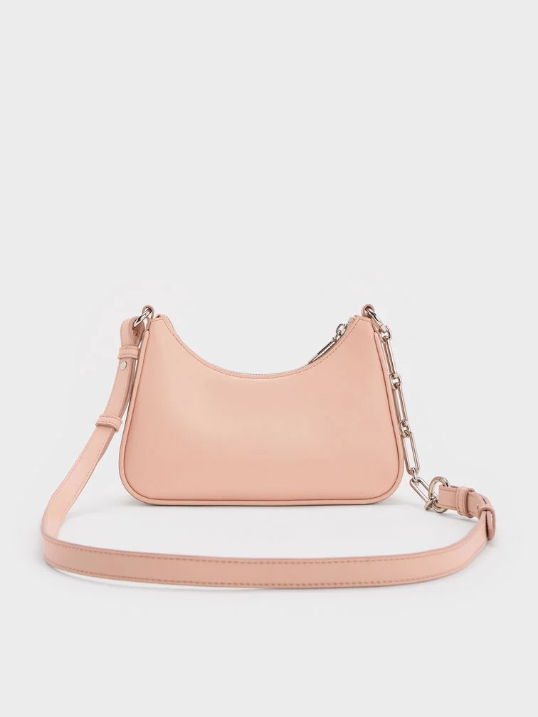 This Lane shoulder bag in light pink is feminine and edgy at once. Featuring a sleek classic silhouette, this piece features a chain-link detail that adds visual interest to the design. There is also an option to carry this as a crossbody bag so you can keep your hands free.