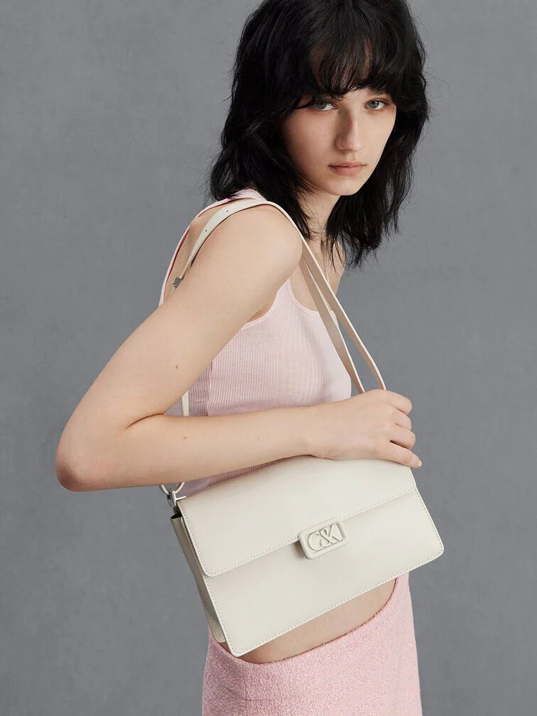 Leather Shoulder Bag - white