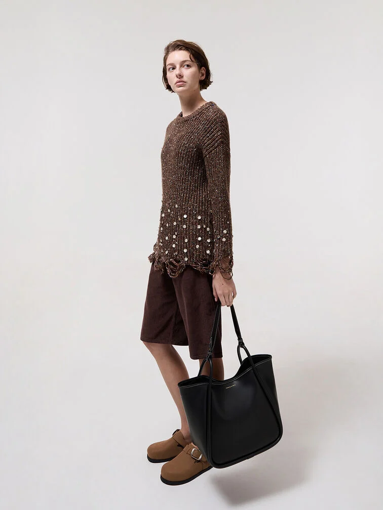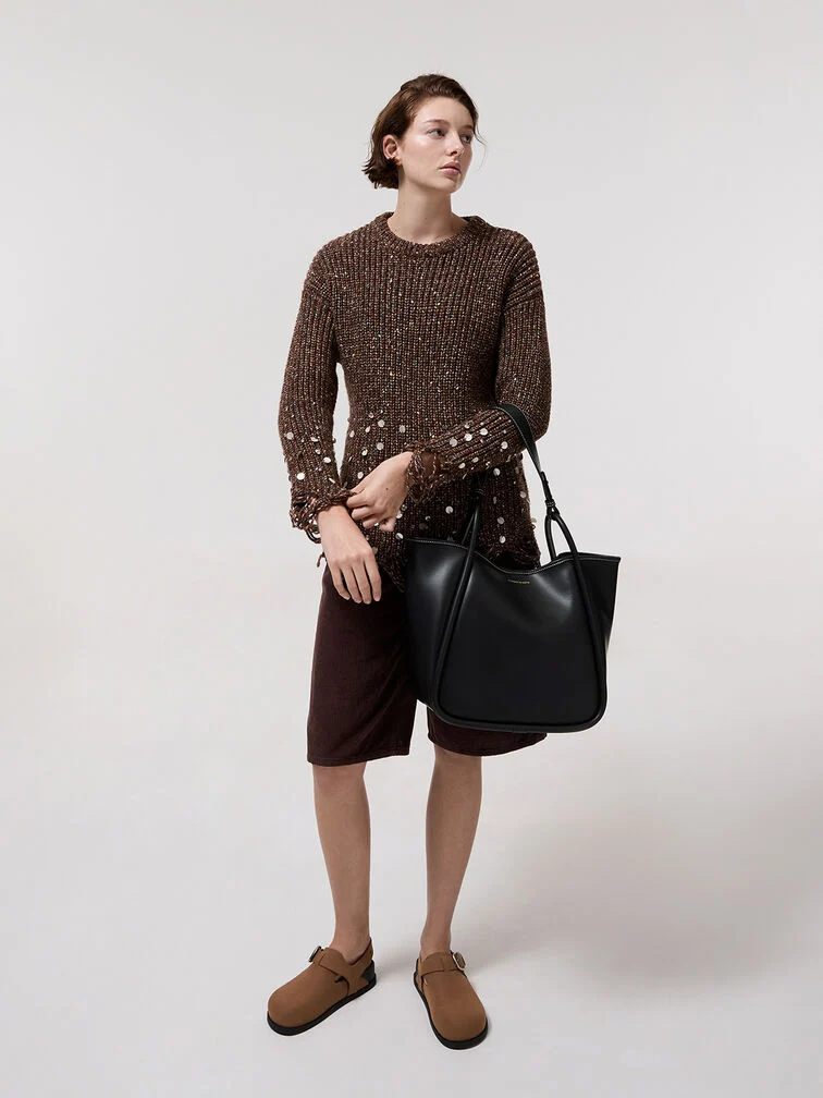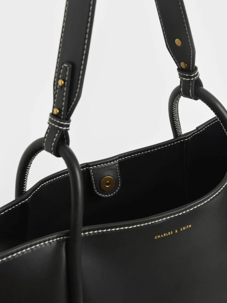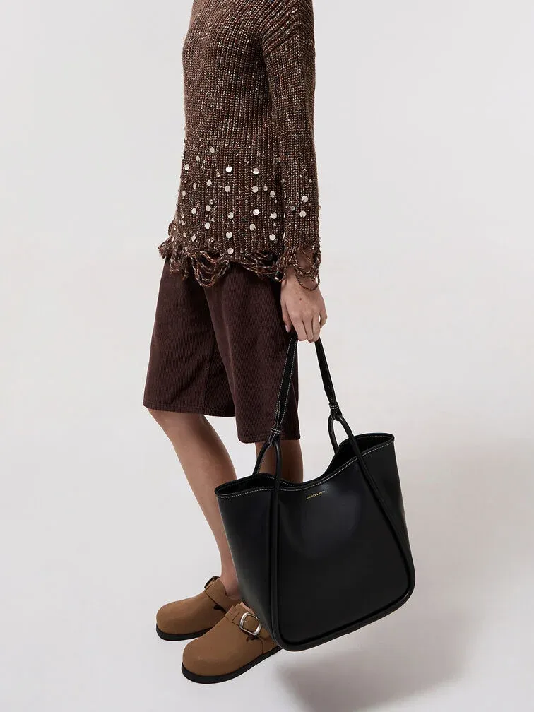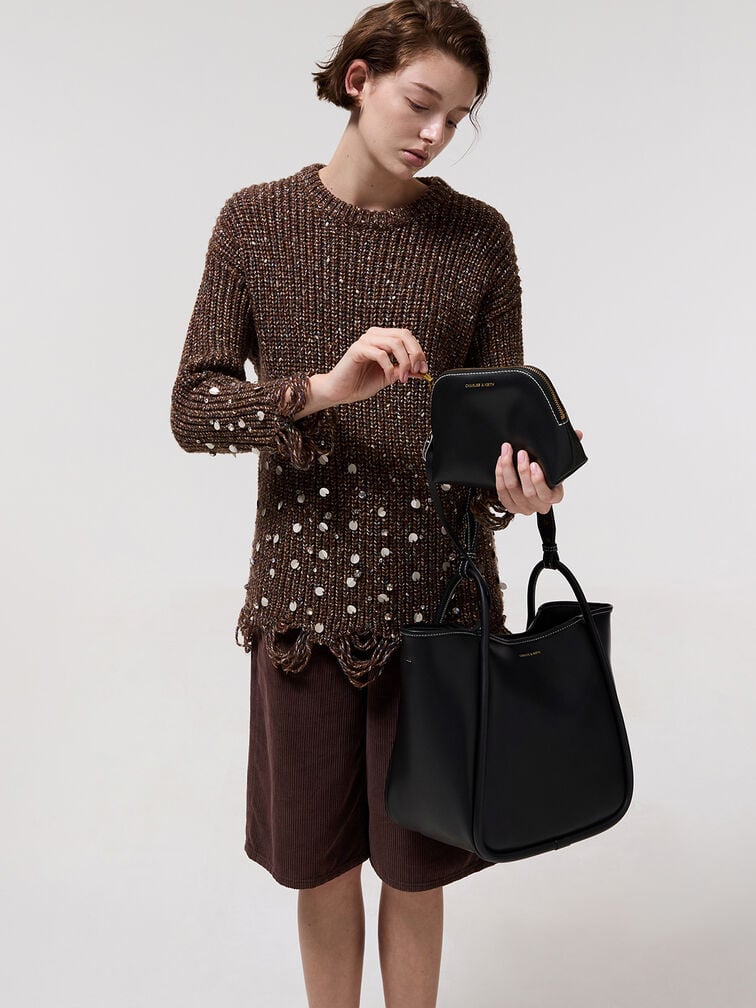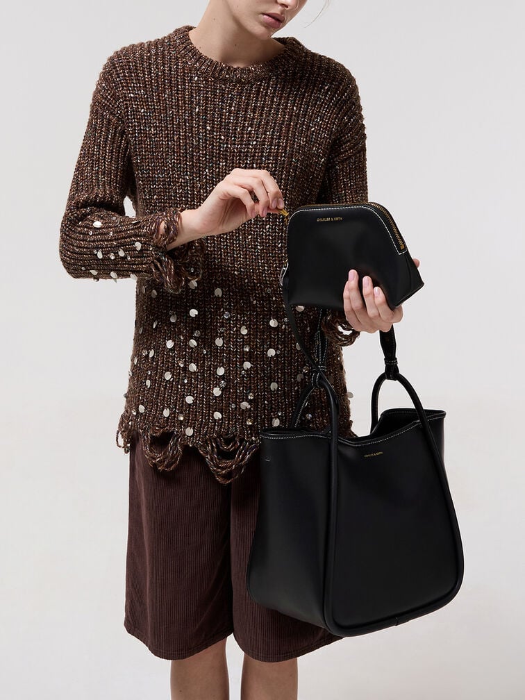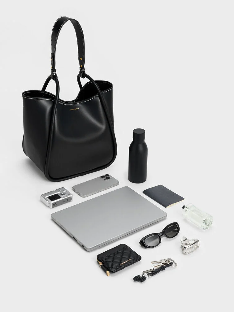 Elegance with a wear-anywhere appeal, this Lyla tubular tote bag is a must-have for any style-conscious minimalist. A sleek all-black finish is easy to incorporate into your wardrobe, while the roomy interior makes for ample storage space. If you need more, it also comes with a detachable inner pouch.