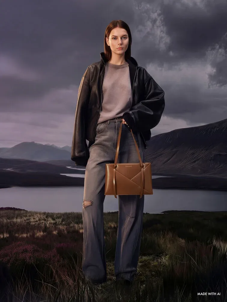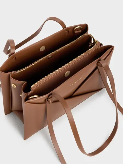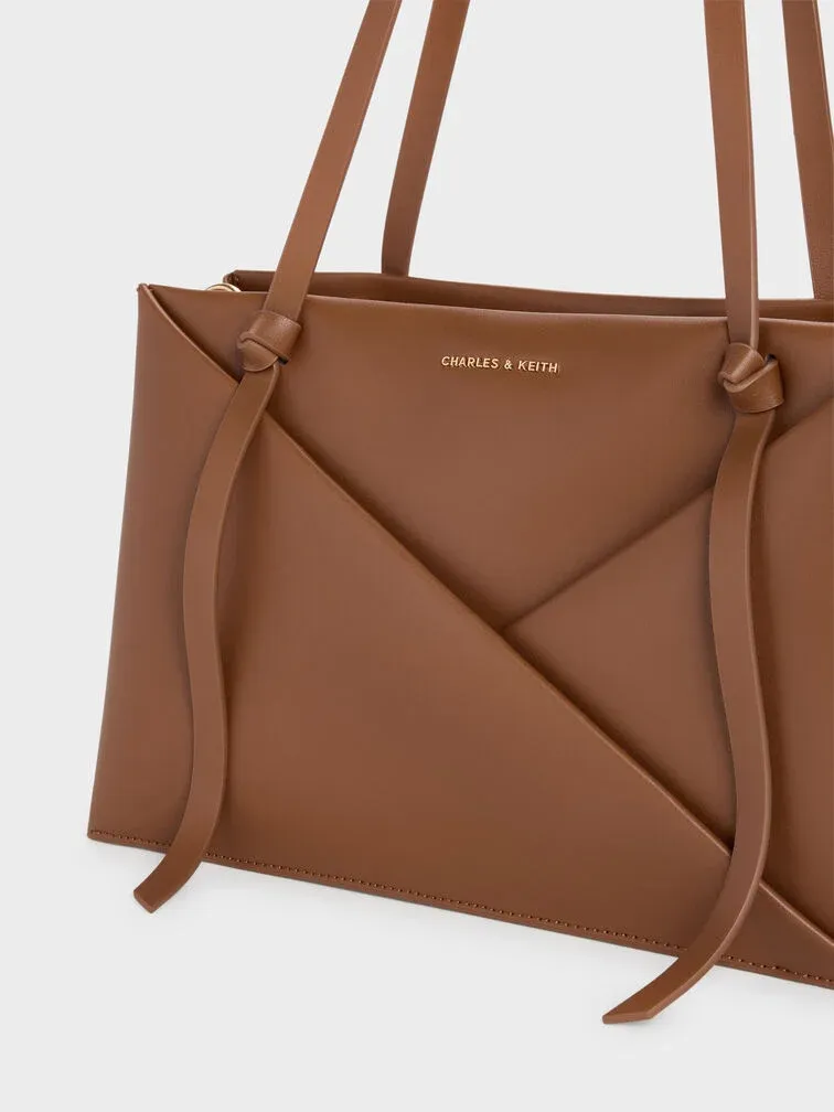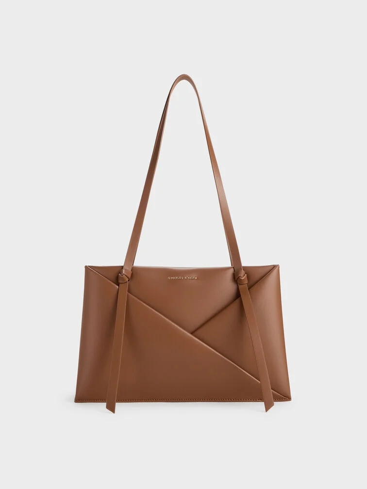 This Midori tote bag in chocolate brown features a geometric panelled finish, a boxy structured silhouette, double handles and a top-zip closure and a compartmentalised interior. Carry it with tailored workwear or relaxed separates on days you want to look effortless yet polished.