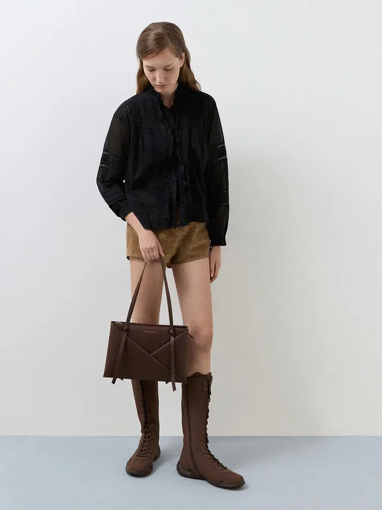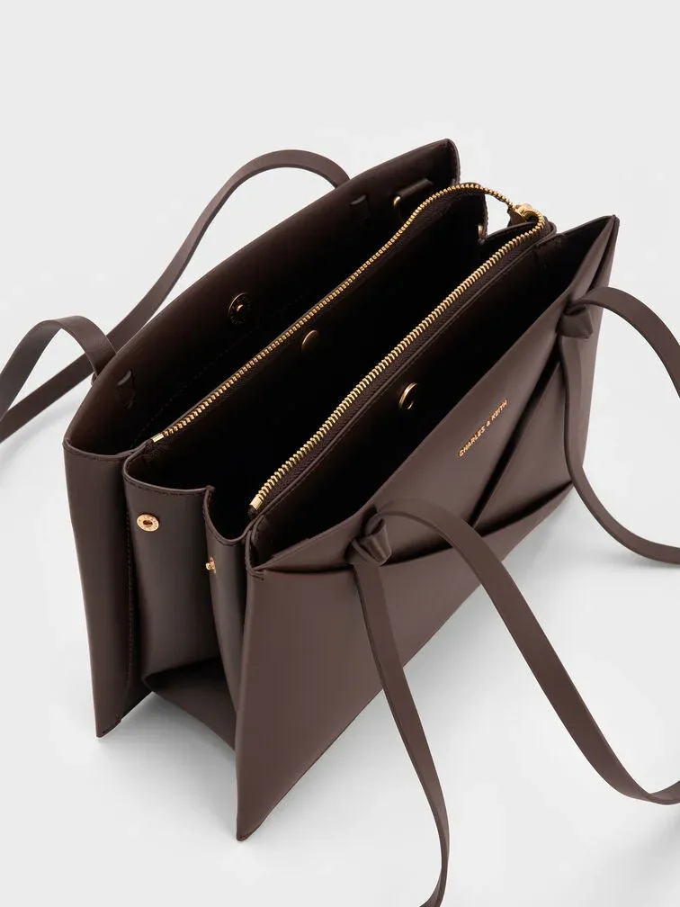 This Midori tote bag in espresso brown features a geometric panelled finish, a structured body and double handles. Style it with a tailored blazer and jeans for an effortlessly polished look that will take you from desk to dinner.