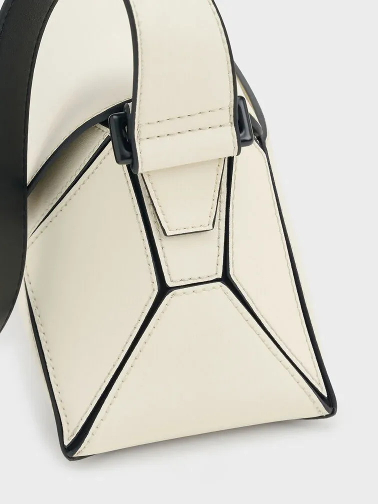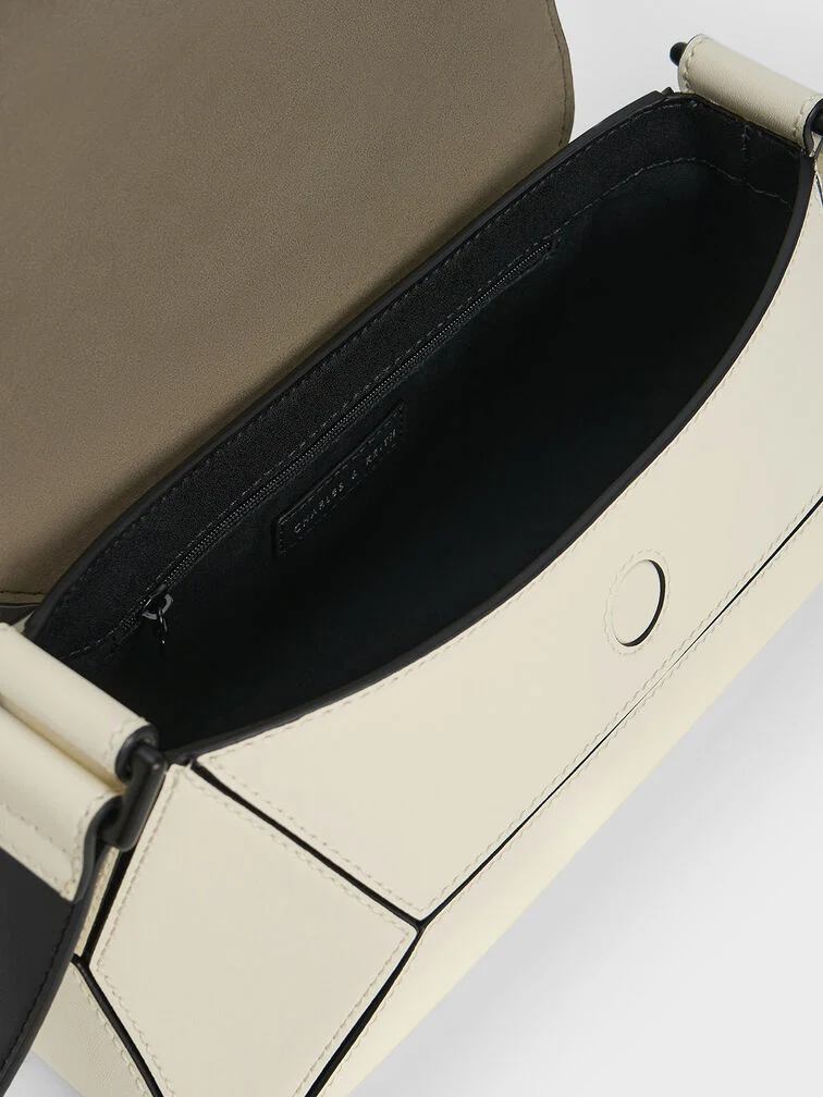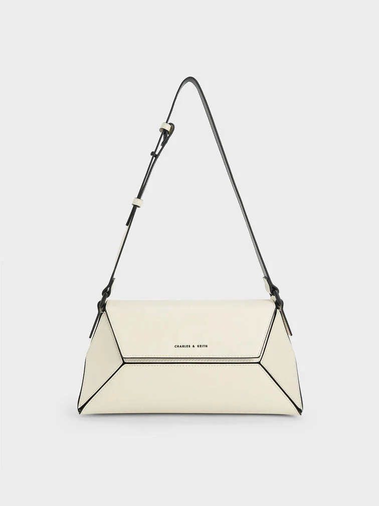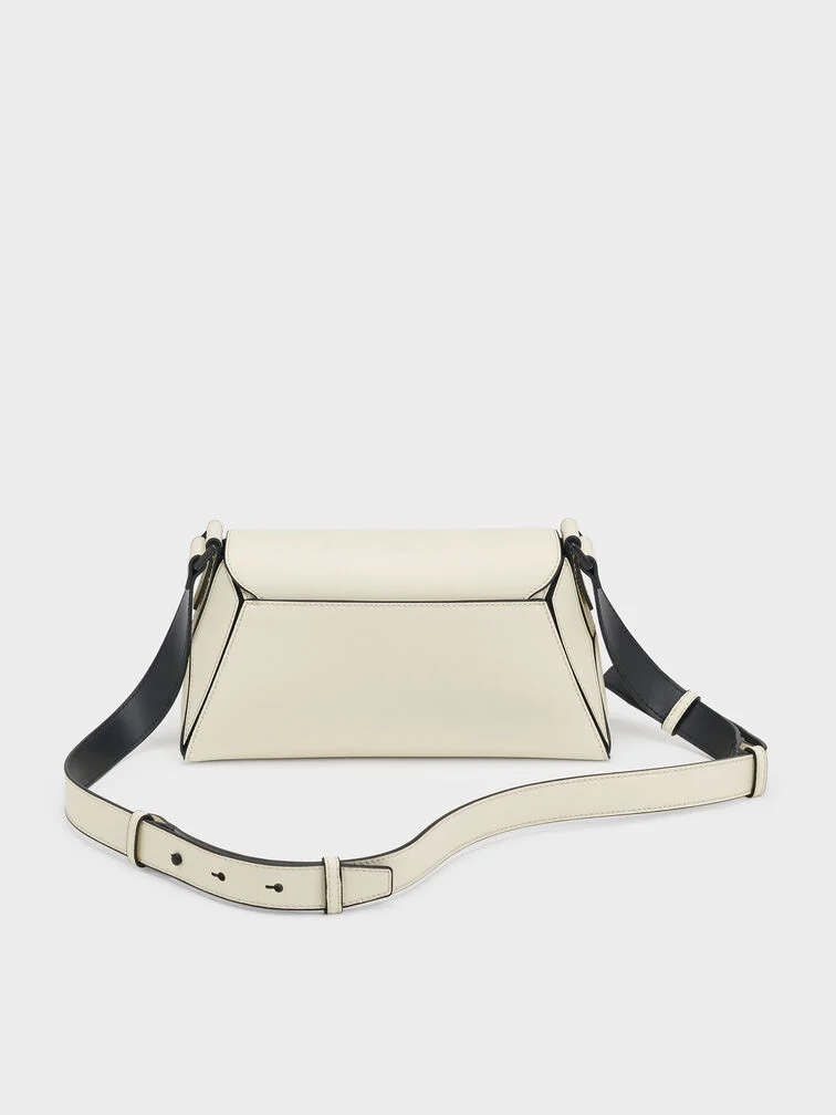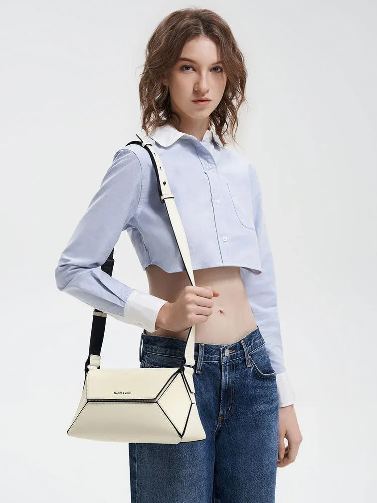 With a pristine all-white finish, our Nasrin shoulder bag will quickly become your new favourite go-to carrier. The geometric silhouette and asymmetric panels offer a modern spin on a classic style, while the contrast stitch-trim detailing on the asymmetric panels lends subtle visual interest. For casual events, pair it with a sleeveless knitted dress in a matching colour palette to nail relaxed-chic dressing.