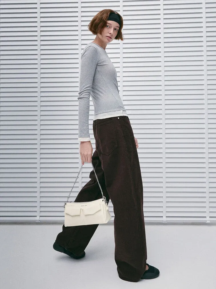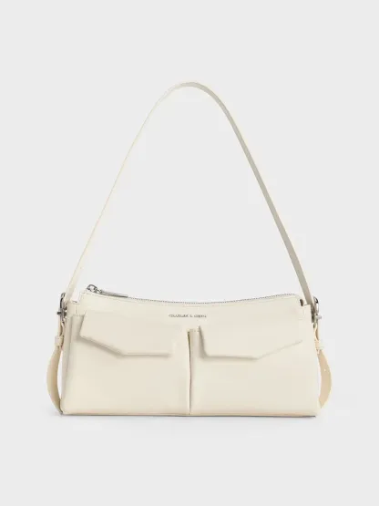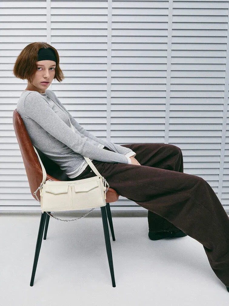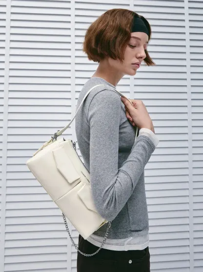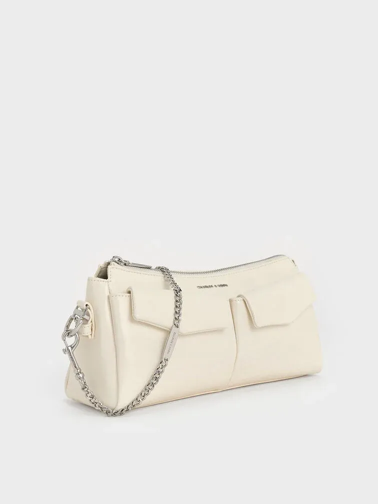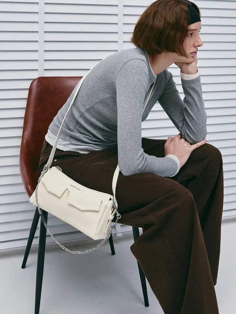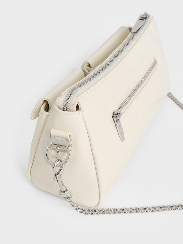 Rachel Front-Pocket Chain Shoulder Bag - cream