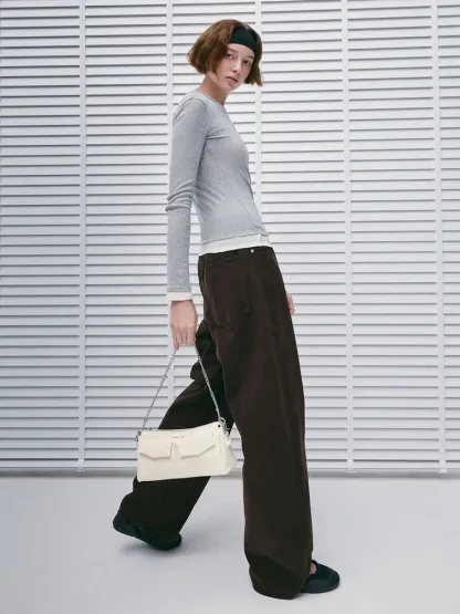 Featuring an elongated, East-West design, this Rachel bag is a trendy yet practical piece. It will easily hold your everyday essentials and more. It is especially great for fitting longer and bulkier items like a compact umbrella, a small book or an e-reader. Along with two front pockets and a back zip compartment, you will no longer have to rummage through your bag -- each item will have a place to belong. It also comes with a detachable shoulder strap that can be adjusted to your preferred drop length and a chain handle for more styling options.