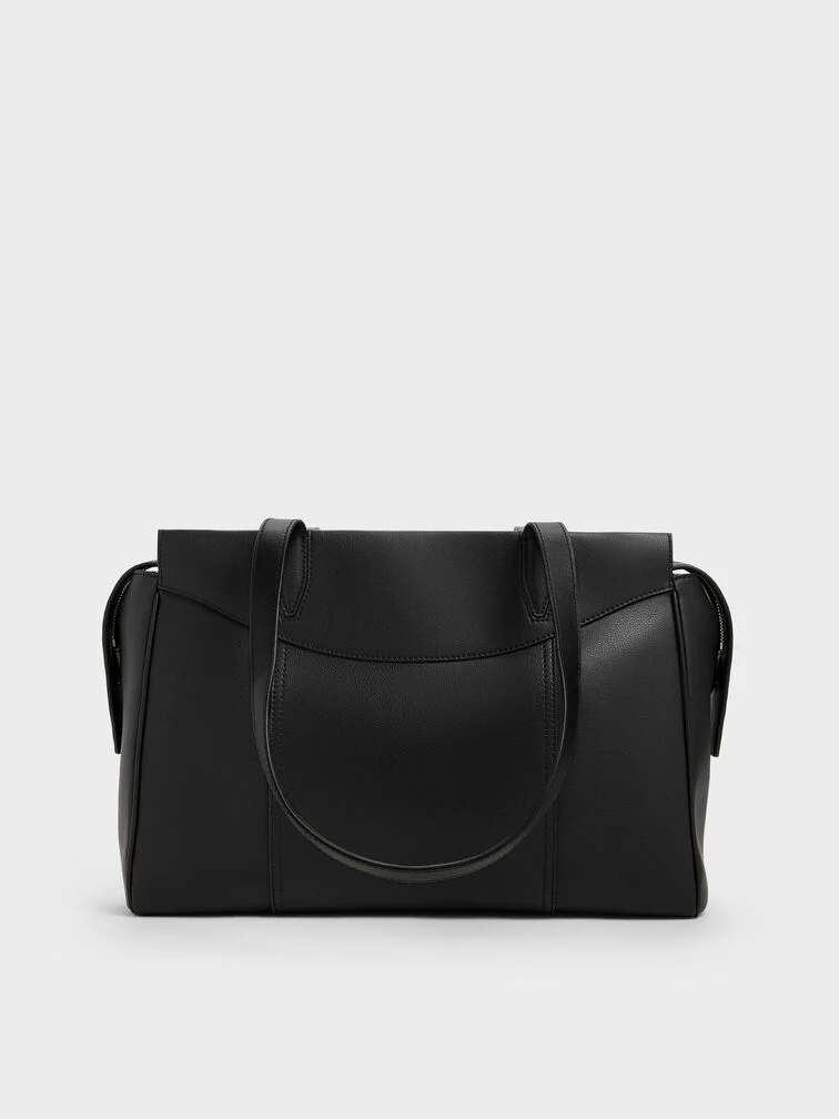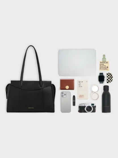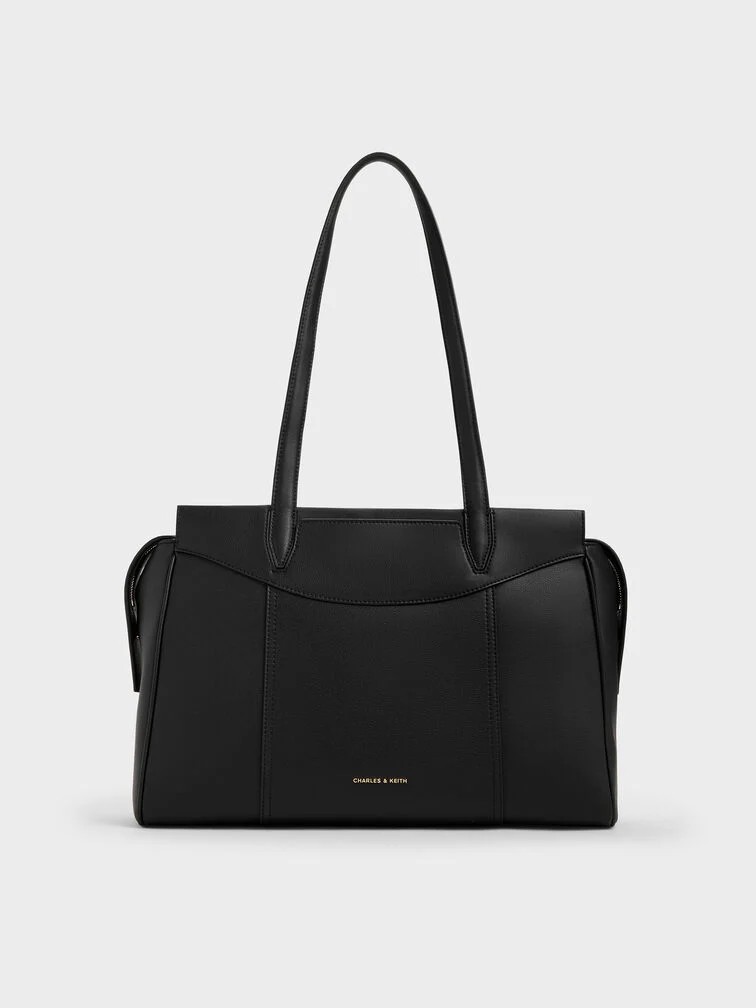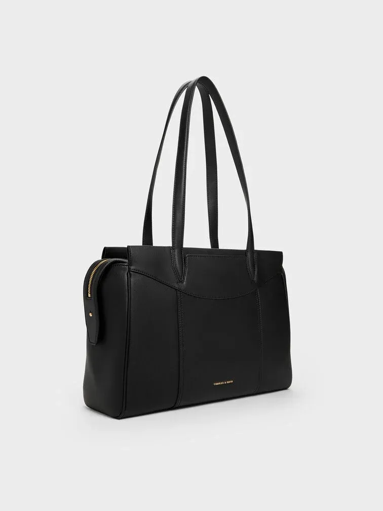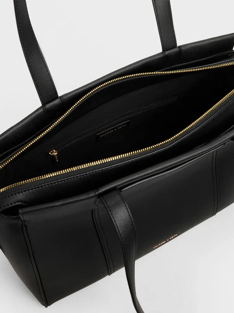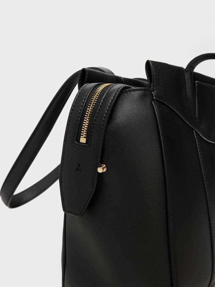 This Roan tote bag in black features a top-zip closure, double handles, and a boxy silhouette. Let it elevate your nine-to-five looks with their everyday elegance.