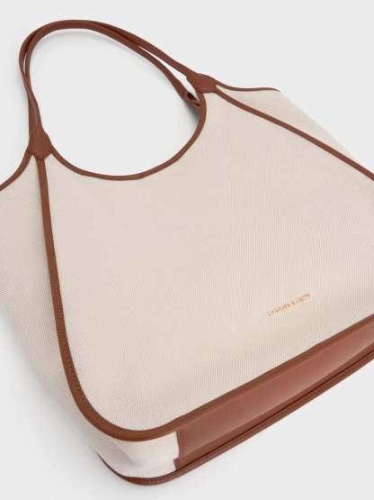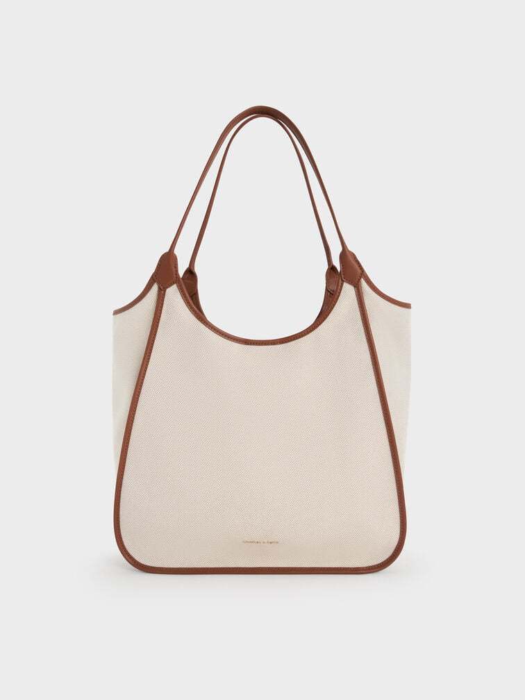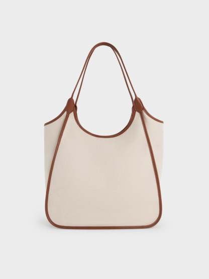 Sianna Canvas Contrast-Trim Tote Bag - taupe canvas