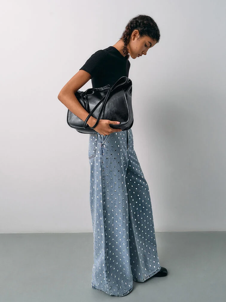 A stylish alternative to your usual canvas totes, the Sianna bag boasts a subtle crinkle-effect finish that adds an edgy touch. Oversized with a slouchy silhouette, it opens up to reveal a spacious interior that can effortlessly accommodate your daily essentials and more. The long handles provide easy wear, while the magnetic closure keeps your belongings secure yet accessible. It truly does not get more functional than this.