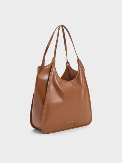 Sianna Crinkle-Effect Slouchy Tote Bag - chocolate