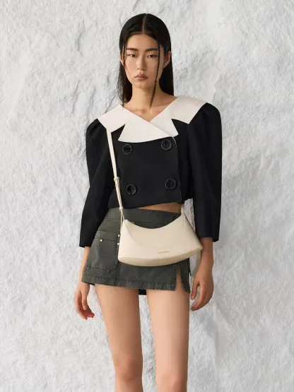 Return to the basics with a clean shoulder bag. The Sigrid features minimalist curves and a soft cream finish for a truly versatile design. Sling this over your shoulder to create an effortless and polished look, or attach the longer strap to carry it as a crossbody bag.