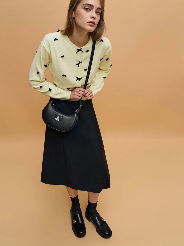 Look no further than the Trice belted shoulder bag for an elegant everyday companion. With its versatile black finish, it effortlessly complements everything in your wardrobe. The bag stands out with its belted strap and triangle metallic accent, adding a unique flair to the design that sets it apart from other black bags. When you need to keep your hands free, the Trice offers a detachable and adjustable shoulder strap, ensuring convenience and practicality.